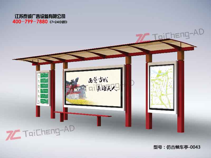 歡迎光臨江蘇泰誠設備科技有限公司 公司專業生產定做公交站臺、候車亭,宣傳欄,標識標牌等系列產品!